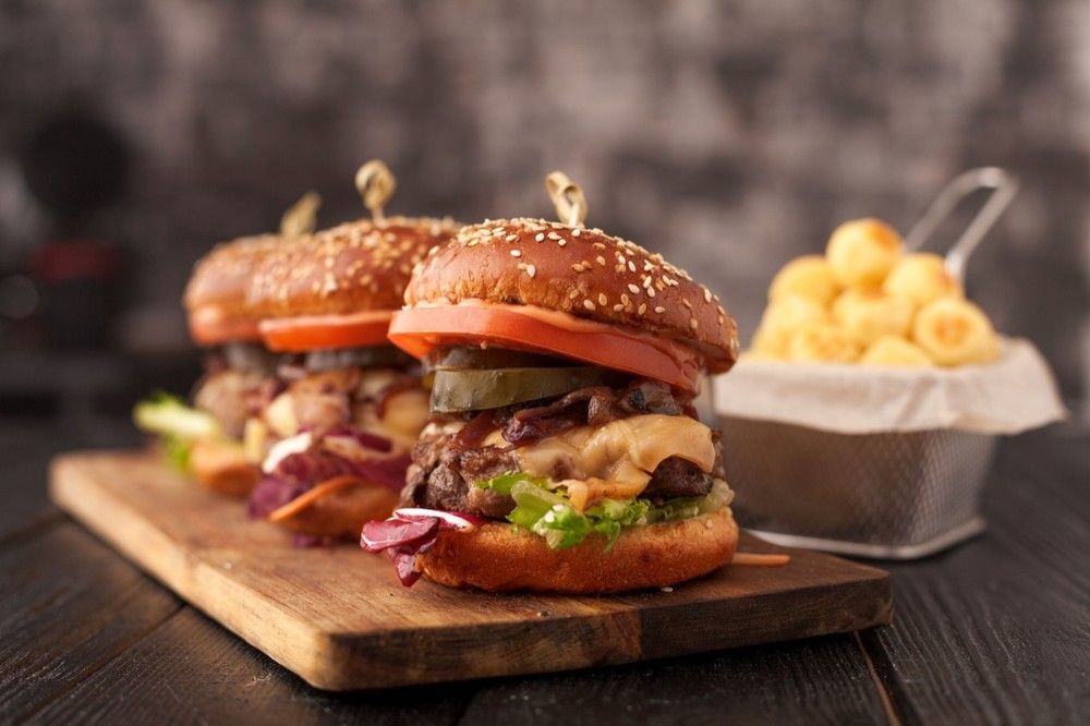 Бургер із двома соковитими яловичими котлетами, скибочками сиру чеддер